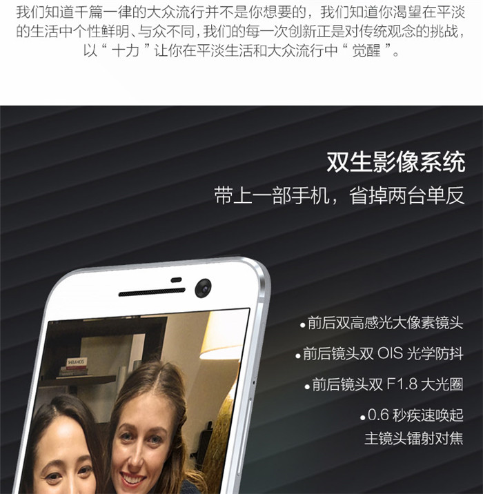 | 其他性能 | 后置攝像頭支持OIS光學(xué)防抖, BSI背照式感應(yīng)器,激光對焦,F(xiàn)/1.8超大光圈,25.57mm超大廣角,4K高清攝錄 |