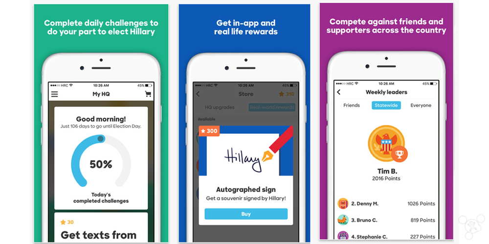 根據(jù)外媒 9to5Mac 的報(bào)道,這款 Hillary 2016 將會(huì)為 iOS 用戶提供黨政知識(shí)等一些游戲方面的日常挑戰(zhàn),還可以和全國各地的希拉里支持者進(jìn)行比賽,并且提供數(shù)字化和現(xiàn)實(shí)生活中的一些獎(jiǎng)勵(lì),比如希拉里親筆簽名的紀(jì)念品等等。