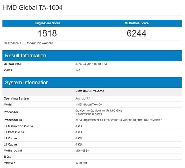 Geekbench上曾出現(xiàn)過名為HMD Global TA-1004設(shè)備的跑分,這是HDM暫未發(fā)布的產(chǎn)品,配備了高通驍龍835處理器,很多人猜測這就是HMD即將發(fā)布的旗艦Nokia 9,但是最新的消息顯示這款TA-1004其實(shí)是Nokia 8,并不是最頂級的Nokia 9,并且Nokia 8有可能就在這個(gè)月31號在歐洲發(fā)布。