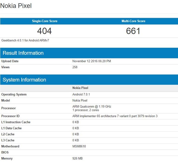 當(dāng)然,我們猜測這僅僅只是其中一款機(jī)型而已,因為在此之前Geekbench上還出現(xiàn)過一款名為Nokia D1C的手機(jī),配備驍龍430處理器以及3GB RAM,配置略高一些,但顯然也只是低端機(jī)型。