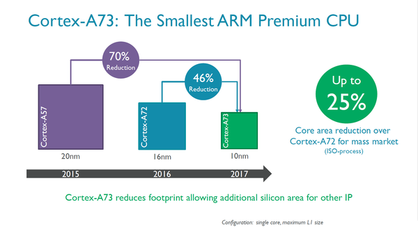 目前,A73的物理IP核心已經(jīng)面市,基于臺(tái)積電16nm FFC制程工藝。ARM表示,基于16nm FFC的A73有助于Soc合作伙伴采用能效最高的A73,滿足主流行的Soc,提高性價(jià)比。滿足中端市場(chǎng)。而明年的10nm A73則主要定位高端,提高更極致的性能。